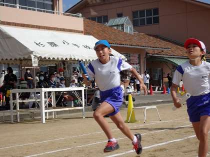 5年生のリレーは、赤団が1位でした。