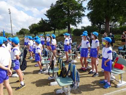 解団式後、6年生にエールを送りました。