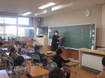 今日の国語は、ワトソン先生!漢字には、多くの読み方があるんだって。元気よく漢字の読みを発表していました。