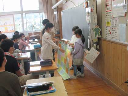昨日の運動会で、誘導や案内でお世話になった6年生へ感謝のメッセージを届けに行ってきました!