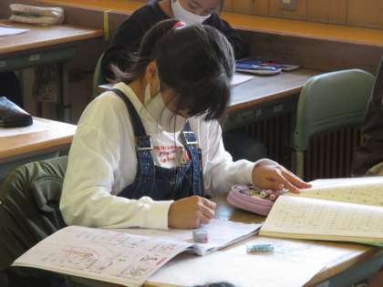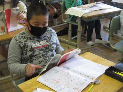 4年生 漢字を確認 公開日 2020/10/21 更新日 2020/10/21 4年生 漢字のドリルを進める中で、3年生のときに習った漢字を書くページが出てきました。 うっかり忘れてしまった字は、教科書を使って確認します。 久しぶりに書く字もありました。