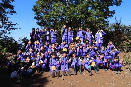 来拝山の山頂で、クラスごとに集合写真を撮りました。