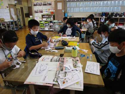 今年は、コロナ禍の影響で思うように社会見学に行けません。そこで、社会科の自動車を組み立てる工場の学習では、紙の自動車を実際に組み立てる体験をしました。