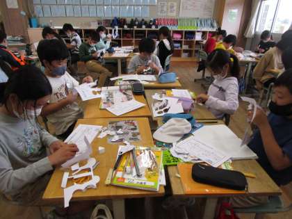 子供たちは、黙々とはさみとのりをつかって丁寧に組み立てていました。