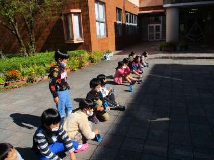 理科では、日光を鏡で反射して日陰の地面に映し出す実験を行い、日光がまっすぐ進むことについて調べました。