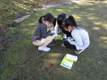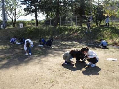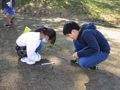 日なたと日かげの地面の温度を、10時、12時の二回測って比べました。