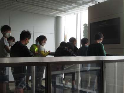 地震体験のコーナーでは、震度1から震度7までの揺れの違いや、過去実際に日本で起きた大きな地震の揺れ方を体験しました。