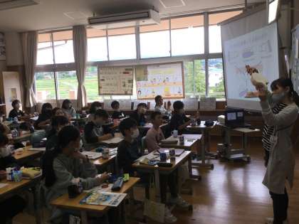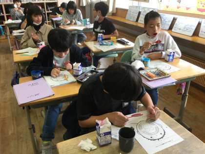 保健の学習では、歯の健康を守っていくための取組をしています。今日は、カラーテスターで歯垢を染め出し、自分の歯の状態を確かめたり、養護教諭の先生から正しい歯磨きの仕方を教えてもらったりしました。ブラッシングの時間になると、子供たちは鏡を見ながら赤く染まっている部分を、教えてもらった磨き方で丁寧に磨いていました。