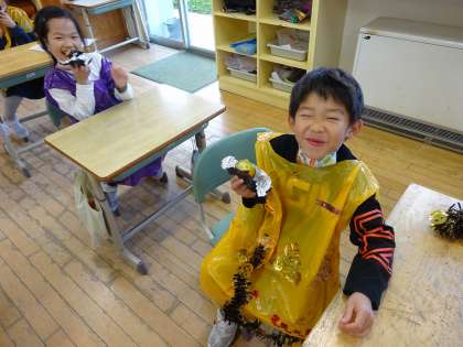 2年生 生活 公開日 2020/10/29 更新日 2020/10/29 2年生 野菜の収穫を祝う「ハロウィンパーティ」を行いました。爆裂種のトウモロコシからポップコーンを、サツマイモを焼き芋にしました。自分たちで収穫したものを、おいしく味わっていました!