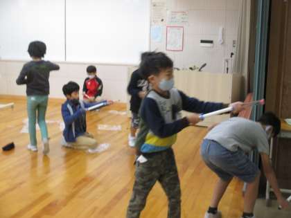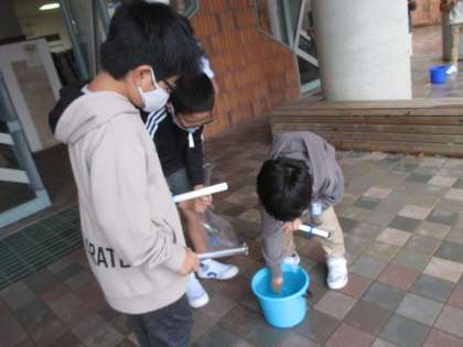 4年生 空気鉄砲 公開日 2020/11/04 更新日 2020/11/04 4年生 理科で空気の学習に入りました。 空気鉄砲を使い、スポンジの玉がどれだけ飛ぶか確認しています。 鉄砲の中に水を入れると飛び方はどうかわるのでしょう・・?