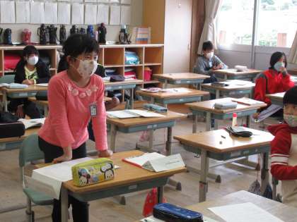 話合いの結果、白団は、2階エリアのごみ拾い、青団は教室・廊下の清掃をすることになりました。