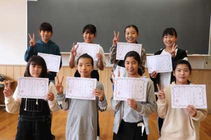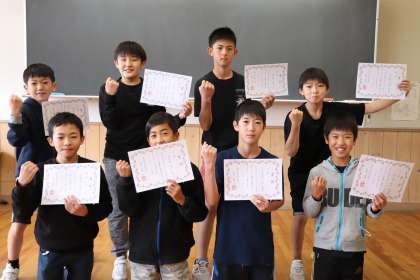 6年生 マラソン大会入賞おめでとう! 公開日 2020/11/06 更新日 2020/11/06 6年生 昨日行った、マラソン大会で8位までに入った子供たちに賞状を渡しました。連覇を果たした子や順位を上げた子もいれば、同じ入賞でも昨年から順位を下げた子もいました。それでも、最後のマラソン大会で入賞することができて、どの子も嬉しそうでした。