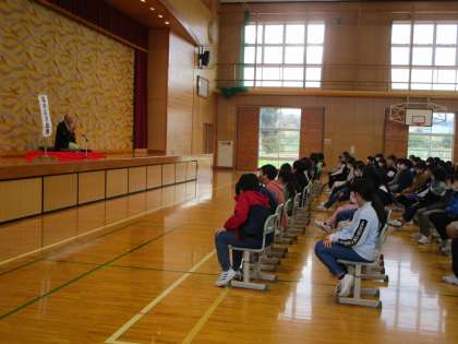 落語家の越中家漫欽丹さんを講師にお迎えして、命の授業がありました。