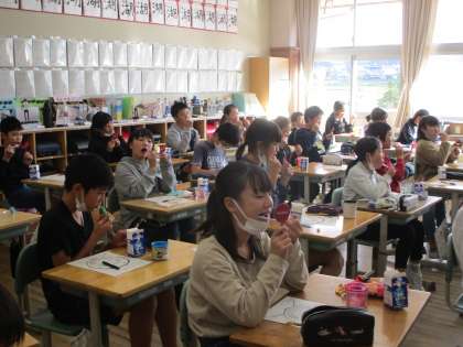6年生 歯の健康状態を確かめよう 松組 公開日 2020/11/09 更新日 2020/11/09 6年生 歯を赤く染めて、歯垢の付き方を見ました。 「奥歯に歯垢がついてる」 「歯に赤の縦線がついてる!」 自分の歯の磨き方のくせや特徴が分かり、普段の歯磨きに生かせることはないか考えました。