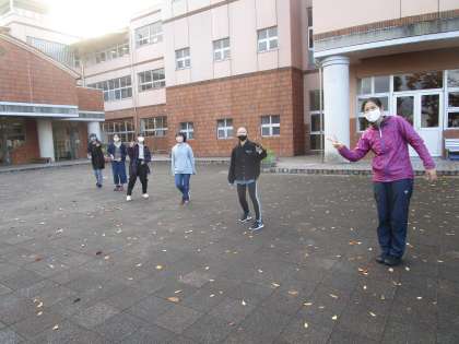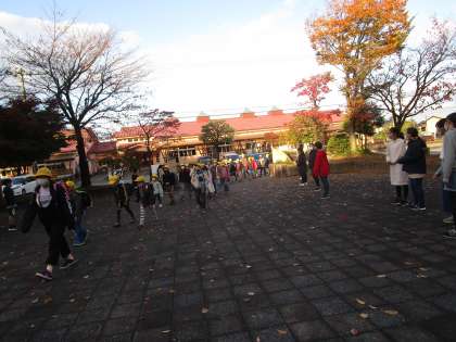 杉の子広場に並んで、登校する杉の子に「おはようございます!」と元気よく挨拶をしました。