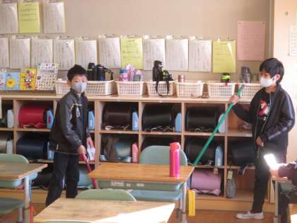 掃除を選んだチームは、教室や廊下をきれいにしようと活動に取り組んでいました。