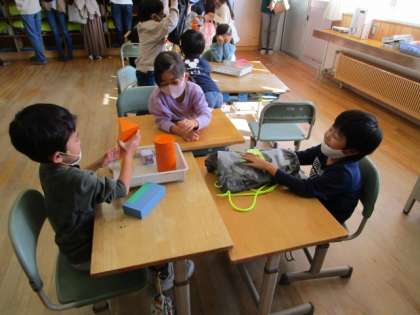 初めての学習参観に、ドキドキわくわくしていた子供たち。友達の話をじっくり聞いたり、グループで声をかけ合いながら活動したりして、楽しく学習に取り組みました。