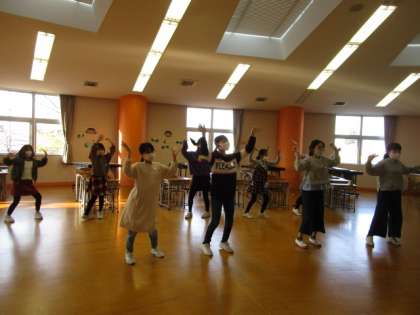 ダンスクラブ 公開日 2020/11/17 更新日 2020/11/17 クラブ活動 全校のみんなにダンスを見てもらうため、来月、動画を撮ろうと考えています。その動画の撮影に向けて、今日は立ち位置を決めて踊りました。練習の様子を動画に撮り、さらによいダンスになるよう、自分の動きをチェックしました。