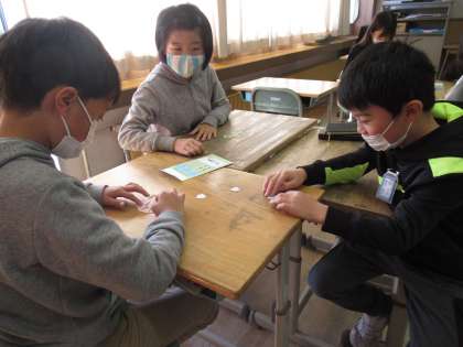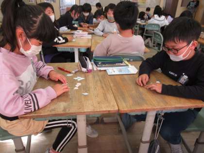 図形についての見方や考え方を広げていくために、「しきつめ」の活動をしました。どんな形が、うまくしきつめられるのか、図形を操作しながら、考えました。