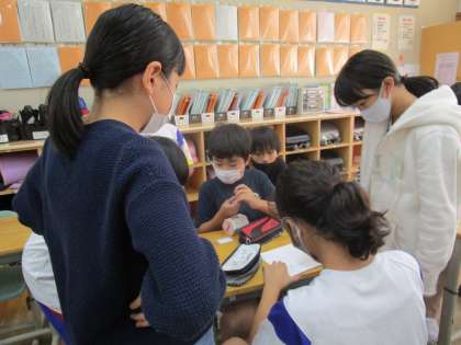 運営委員会では、5年生が中心になって赤い羽根共同募金への呼びかけを考えています。休み時間にも、熱心に話し合う様子が見られました。