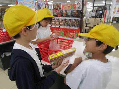 おうちの人と約束してきたものを買い物することにも挑戦です。持ってきたお金で買えるのか、計算しながら真剣に選んでいました。
