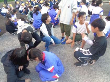 6年生 宿泊学習5 公開日 2024/10/11 更新日 2024/10/11 6年生 夕べの集いでは、校旗の降納、学校紹介を行いました。学校紹介では、杉原小学校の魅力を一緒に宿泊する学校の仲間に堂々と伝えていました。学校紹介の後のゲームも大盛り上がりでした。