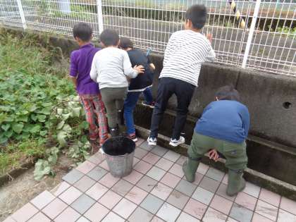 休み時間の様子を見ていると、生き物を探すのに夢中になっていました。