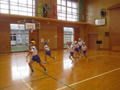 5年生 2年生と一緒に体力つくり! 公開日 2024/10/16 更新日 2024/10/16 5年生 今日の体育では、2年生と一緒にマラソン大会に向けて体力つくりをしました。当日、5年生と2年生は同じ時間に走ることになっています。今日は天気が悪かったため、体育館で4分間走をしたり、昨日磯野あずさ先生に教わったトレーニングをしたりしました。5年生が走っているときには、2年生が大きな声と振り付けで応援してくれました。また機会があれば、一緒に練習したいです。