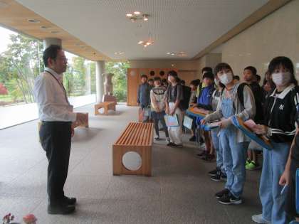 富山市佐藤記念美術館では、学芸員の方から美術品のタイトルに込められた思いや、美術館での仕事内容について教わりました。見学するだけでは分からなかった、美術館の裏側を知ることができました。