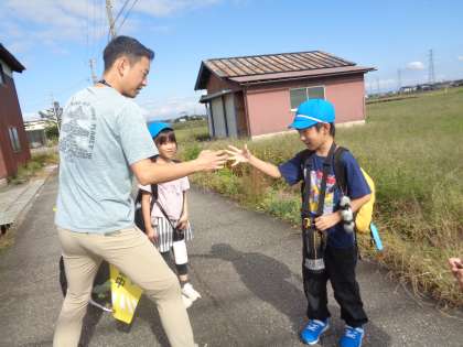 水辺プラザまで遠足に行きました。班のみんなと協力してポイントごとの問題に取り組んでいました。
