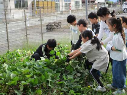 2年生 生活科 いもほり その1 公開日 2024/10/22 更新日 2024/11/11 2年生 待ちに待芋掘り芋掘りをしました。まず、長く伸びたつるを「大きなかぶ」のお話のように、みんなで引っ張りました。