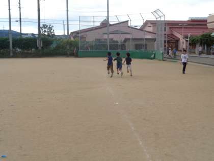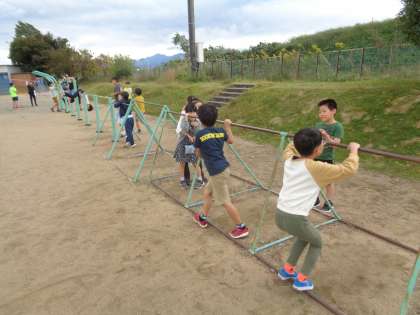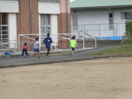 来週のマラソン大会に向けて持久力を高めています。走り終わった後、鉄棒をしている子供がたくさんいました。