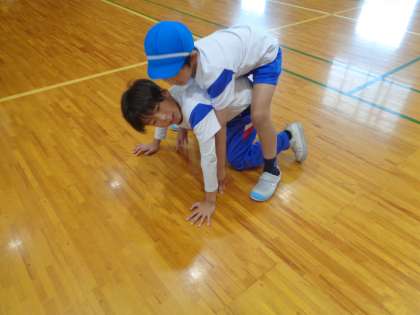 いろいろなものを体を使って表現しました。鏡餅になったり、柔らかくなってつぶれたり、ビヨーンと伸びたりしていました。