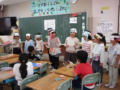 2年生 松組 ハロウィンパーティー その3 公開日 2024/10/29 更新日 2024/10/29 2年生 最後に、ゲーム係の「あたまおしりゲーム」で盛り上がりました。全員揃ってハロウィンパーティーができて、どの子も嬉しそうでした。