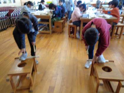 図画工作科では、のこぎりに挑戦しています。今日はのこぎりの正しい使い方を学習し、実際に木を切りました。力加減や角度を試しながら、真剣な表情で取り組む子供たちがすてきでした。