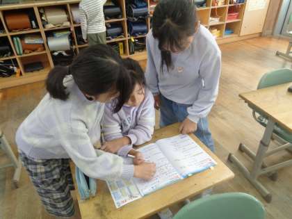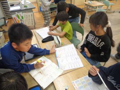 ドリルの問題をみんなで教え合いながら取り組みました。