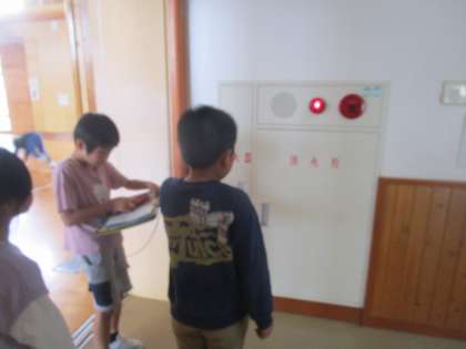 3年生 社会科 公開日 2024/11/12 更新日 2024/11/12 3年生 校内にある消防設備を探しに行きました。どこにどんな設備があるのか、どうしてそこにあるのか話し合いながら活動を進めていました。