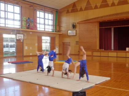 6年生 マット発表会 公開日 2024/11/13 更新日 2024/11/13 6年生 集団マットの発表会を行いました。どのグループも技を行うタイミングや構成を工夫した見応えのある演技を披露していました。