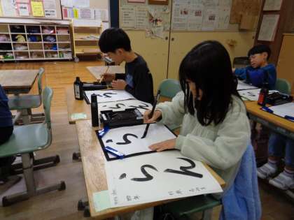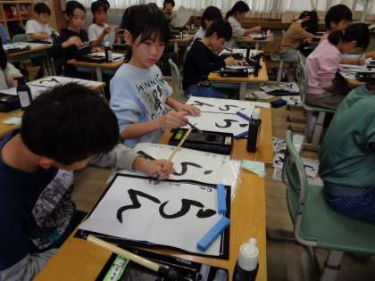 4年生 書写 公開日 2024/11/13 更新日 2024/11/13 4年生 「らん」とひらがなで書きました。漢字とは違って、ひらがなならではの丸みや柔らかさを出すためにつながりを意識しながら書きました。