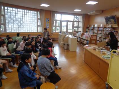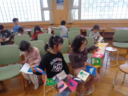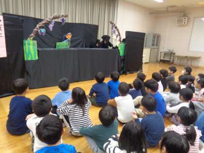 「こでまりの会」の人形劇や「絵本専門士」の堀地はるみさんの絵本・仕掛け絵本の紹介に目を輝かせて聞いていました。