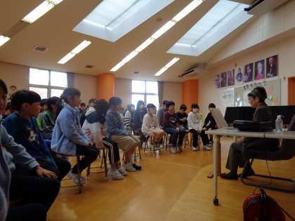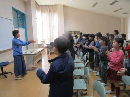 4年生は、鈴木氏による朗読、八尾おはなしの会のみなさんによるお話を聞きました。国語科で学習した「ごんぎつね」を音楽とともに聞き、物語のイメージをさらに膨らませました。たくさんのお話を聞いたので、お気に入りのお話ができたようです。ぜひ、ご家庭でどのお話が心に残っているか聞いてみてください。
