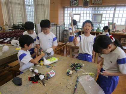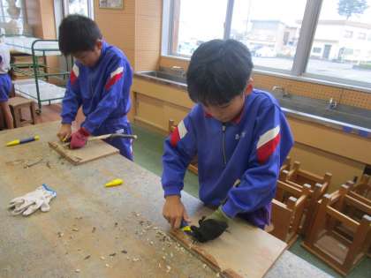 少しずつ小刀の扱いにも慣れてきたようです。実際に絵の具を付けて、どのような形が描けるか試している子もいました。