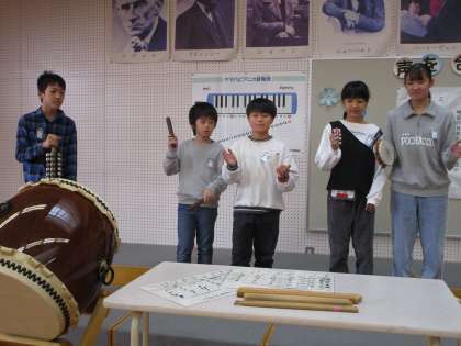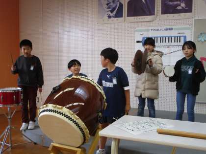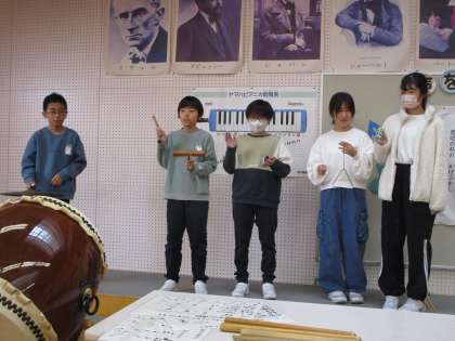 5年生 音楽 リズムアンサンブル発表会 公開日 2024/11/21 更新日 2024/11/21 5年生 今日の音楽の時間に、リズムアンサンブルの発表会を行いました。各グループでテーマを決め、それに合った楽器やリズムを考えて演奏しました。楽器の音色の重なりがとてもきれいでした。