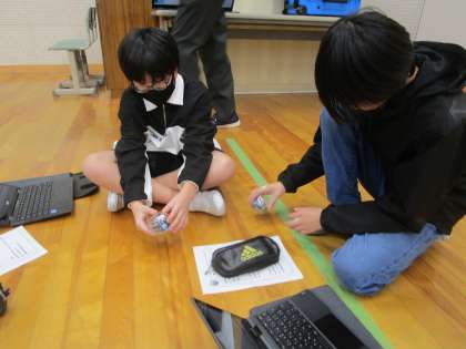 6年生 プログラミング出前講座 公開日 2024/11/21 更新日 2024/11/21 6年生 BOLTというロボットを動かすためのプログラミングを考えました。ロボットがしるしのところでちょうど止まるようにしたり、曲がってほしい向きに曲げたり、機械を光らせたりするなど、様々な動きを試しました。