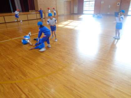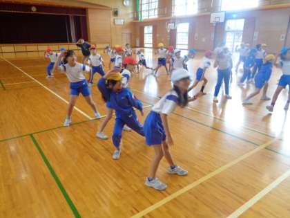 ダンスの練習を行った後、自分たちで考えた〇〇探検隊を体を使って表現しました。
