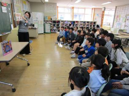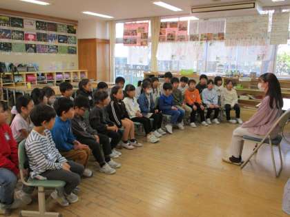 2年生 図書館の学校訪問 公開日 2024/11/21 更新日 2024/11/21 2年生 八尾図書館ほんの森の方が、学校に来てくださいました。最初に素話を聞いた後、松組は「夜」、竹組は「食べ物」をテーマに本を紹介してくださいました。紹介された本は全て貸していただけたので、読むのを心待ちにしている子供たちです。