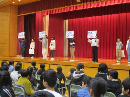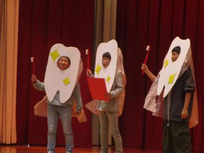 学校保健委員会で、健康委員会が歯に関するクイズをしました。歯を大切にしていこうという意識が高まりました。