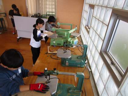 図工の授業で、電動糸のこぎりを使いました。最初は不安を感じていた子供たちでしたが、徐々に慣れてきて複雑な形も切れるようになってきました。作品の完成が楽しみです。