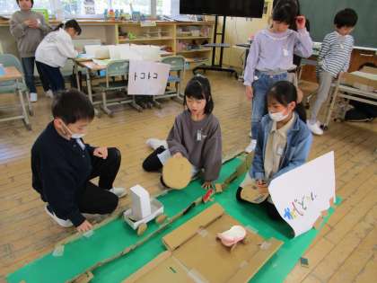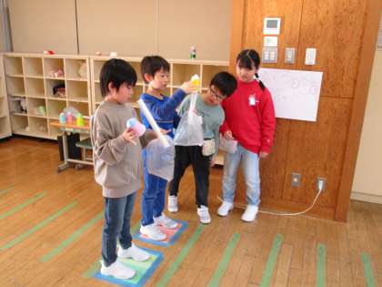 2年生 松組 えがおいっぱい2松おもちゃランド〜2松編〜 公開日 2024/12/02 更新日 2024/12/02 2年生 最後に、クラスのみんなでつくったおもちゃで遊びました。それぞれのおもちゃのよさを見付けながら、難しくて上手くいかなくても、それをみんなで楽しみ、笑顔いっぱい楽しく遊ぶことができました。