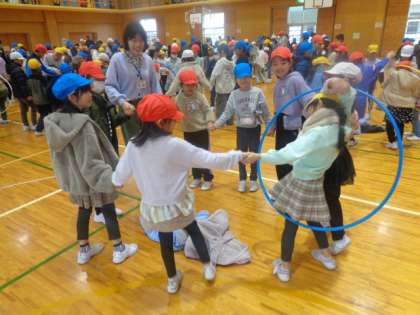 ゲームが終わった後、集会の感想を全校の前で言っていました。